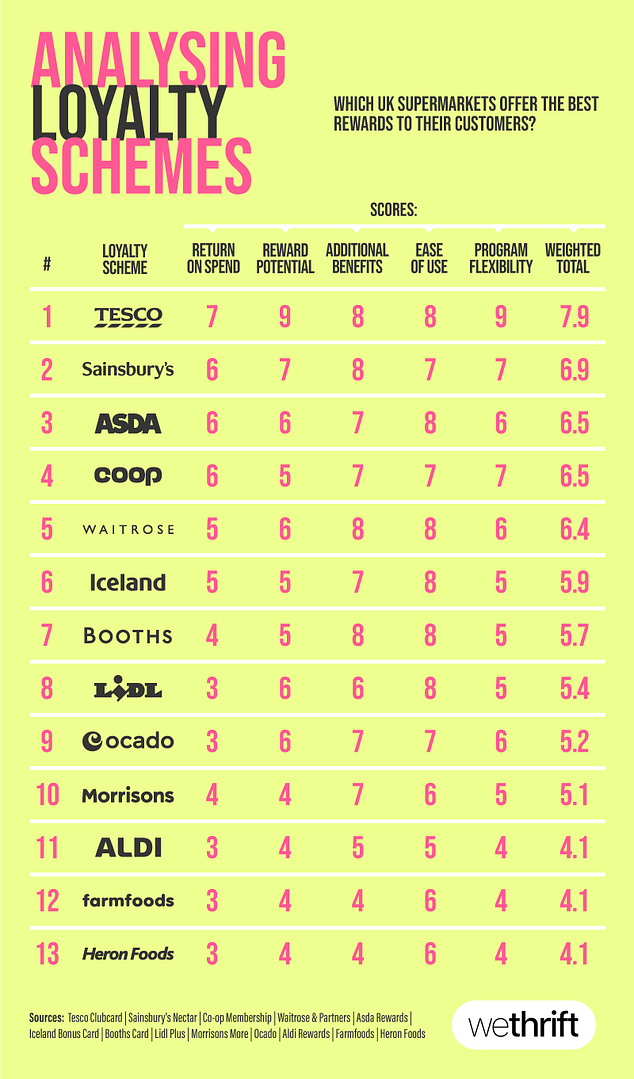 In contrast, Tesco’s Clubcard is the reigning champ, boasting a weighted score of 7.9/10. It’s a good reminder that points bins do matter.