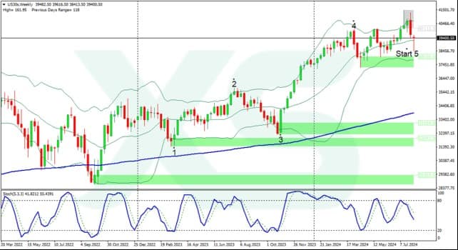 The daily chart shows the Dow Jones Industrial Average nudging back above the 39,000 line, signaling yet another attempt to ignite new bullish energy. This third bounce at the same price level usually spells success after a week of puzzling out‑and‑back maneuvers.